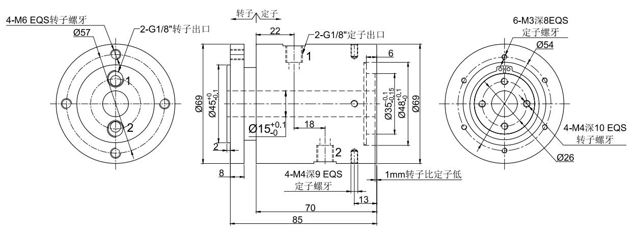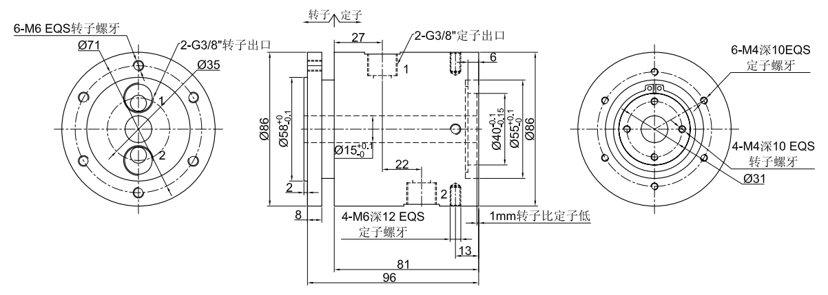 GJ2015系列 (中空15mm, 2进2出, 中空气液旋转接头,气滑环,液压滑环)