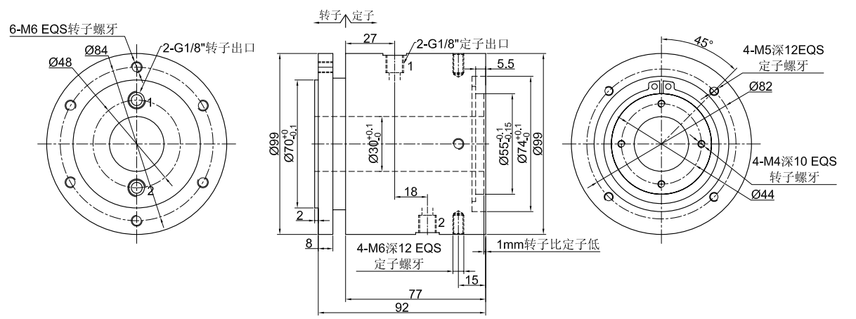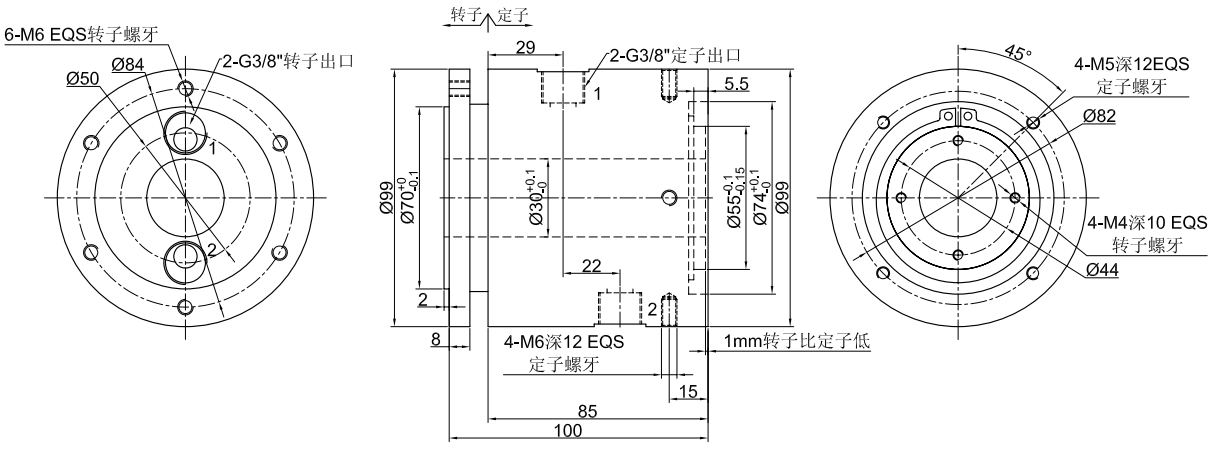 • · GJ2030系列内孔30mm空心气动旋转接头,液压旋转接头,气滑环连接接头有G1/8、G3/8 2种规格