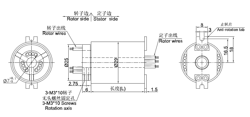 • · 外径29mm, 通孔直径为7mm的标准系列整体式精密导电滑环。