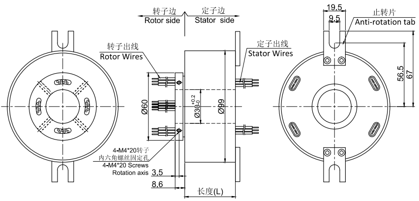 GT3099系列整体式精密导电滑环,主要应用于360度陆续在旋转且需要保证电源,信号不能中断的场合:多用于包装机械、自动化机床、涂布机、自动锁螺丝机、枪刺地毯机器人、智能磨削机器人、抛光机、智能仓储机器人、 电缆卷轴、压模机、离心机、仓储物流车、喷涂设备等任意需要360°旋转导电或传输各种控制信号的装置。