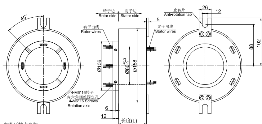 GT80158系列整体式精密导电滑环,主要应用于360度陆续在旋转且需要保证电源,信号不能中断的场合:多用于医疗器械、纺织业设备、矿山工程机械、塑胶/硅胶制品生产设备、转马游乐设备、自动化生产设备、珍珠棉(E P)聚乙烯发泡塑胶机械设备、工业机器人、教育仿真设备、工程检测仪器、金属表面精整加工设备、自动抛光设备、机械手、造纸生产线、印刷机械设备、干燥机设备、热熔胶涂布机、陆续在输送机械设备、传感器、电缆生产与 检测设备等任意需要360°旋转导电或传输各种控制信号的装置。