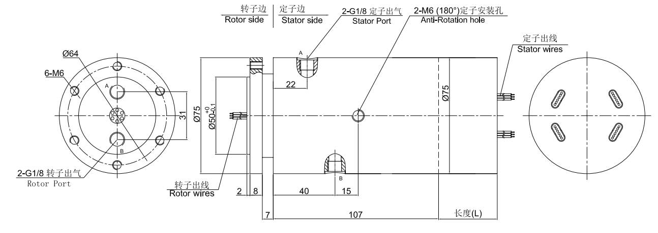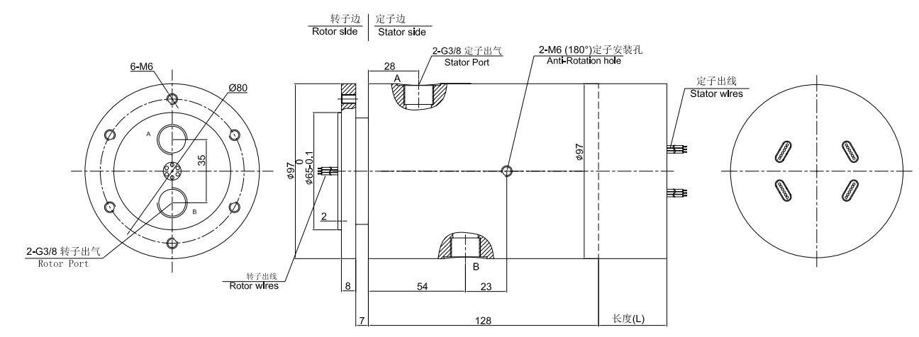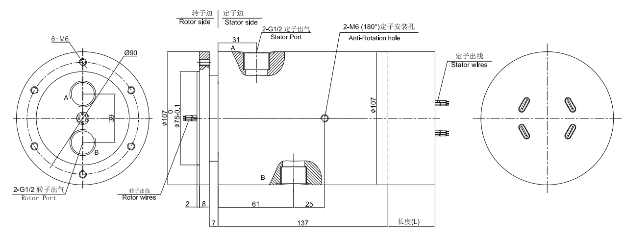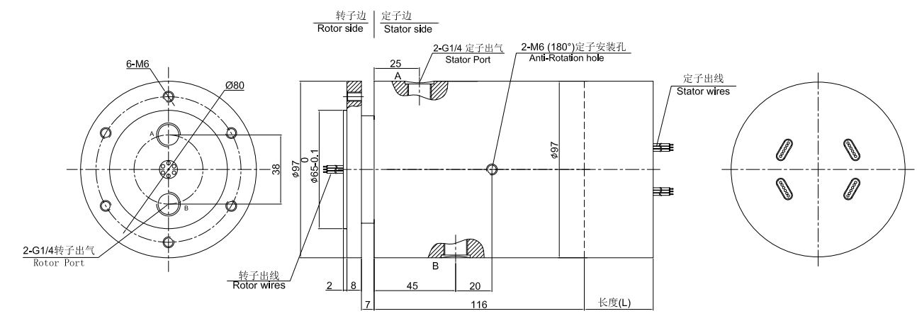 • · 标准为法兰安装形式,旋转接头,2路气液滑环,液压回转接头可定制空心轴安装