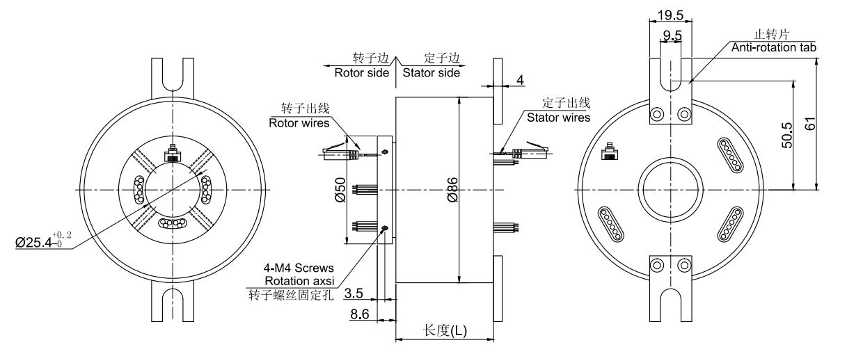 • · ME2251系列1路以太网滑环,网线滑环,内孔25.4mm,外径为标准86mm的紧凑型整体式结构的1通道100M/1000M 以太网整体式精密导电滑环。