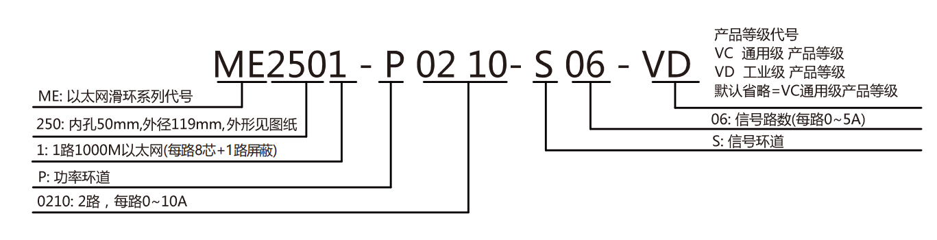 ME2501单通道以太网滑环系列选型表