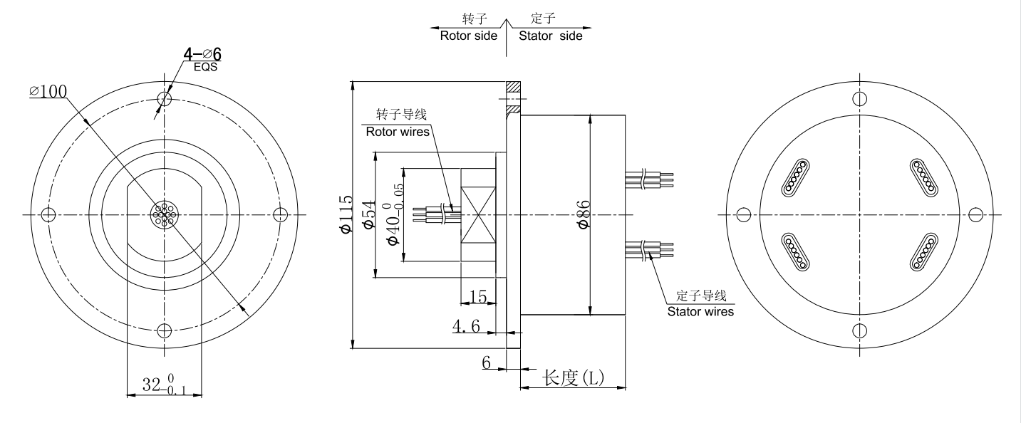 • · 实心滑环,中心无通孔, 适用于定子法兰端面安装