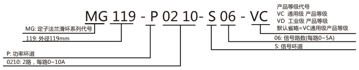 • · MG119系列电线滑环,电线旋转接头是外径119mm的定子部分带连接法兰的一系列滑环的总称。