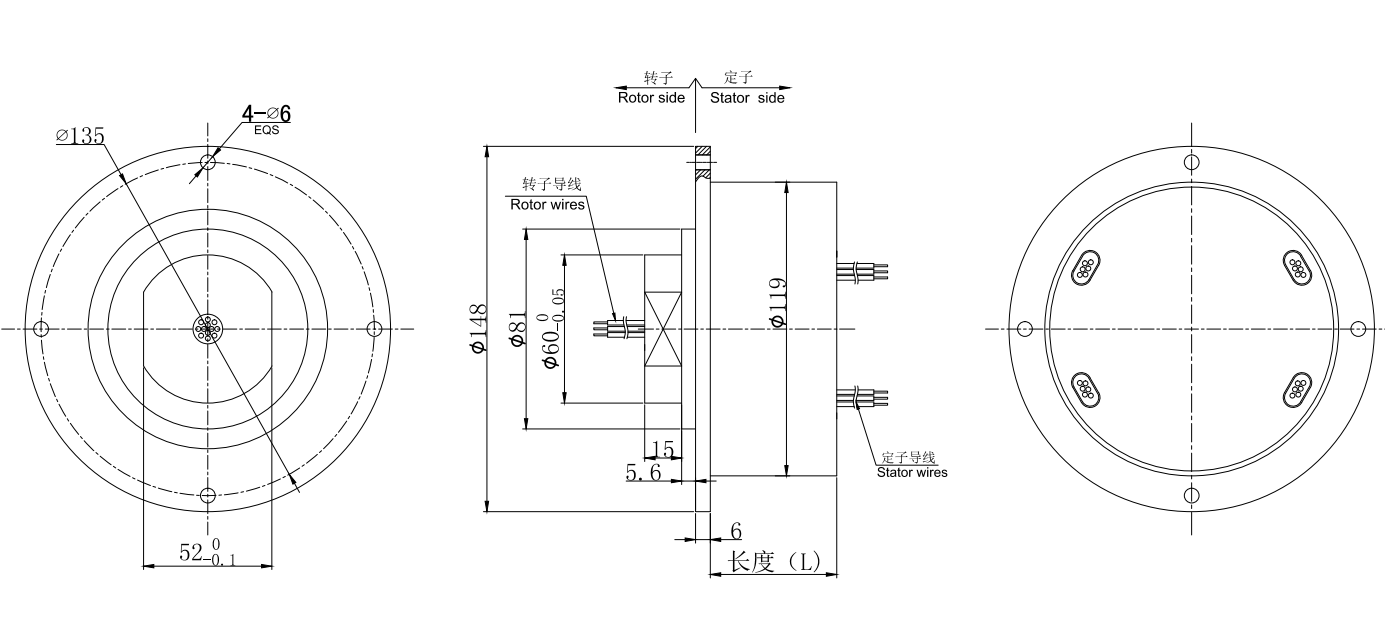 • · 实心滑环,中心无通孔, 适用于定子法兰端面安装
