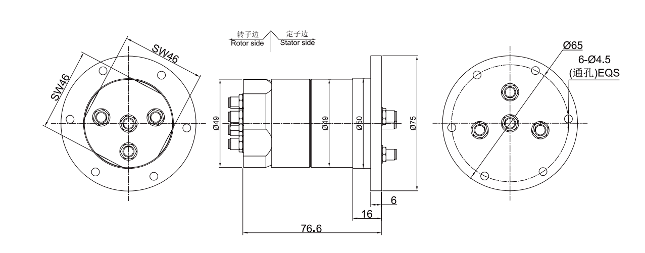 • · MHF400系列4通道高频旋转关节,4进4出同轴旋转接头,每个通道的最高频率2.5Ghz, 高频滑环是专门为满足高速串行数字信号或模拟信号传输而开发的产品。可选项: 可混合电源功率,24V控制信号、通讯信号、动力电源、流体空气水等介质的混合滑环
