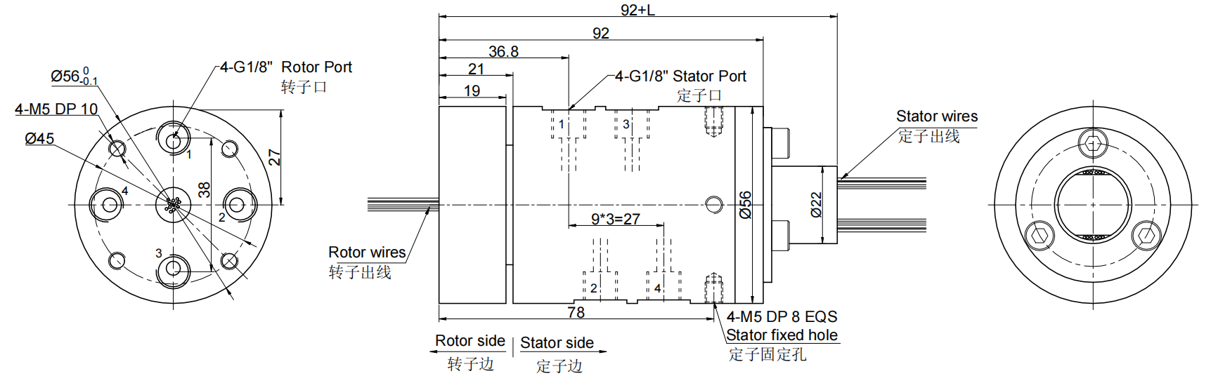 此款气动旋转接头是一款扭力小,性价比超高的旋转接头(也叫气滑环或者气电), 速度最大可达600RPM, 可单独传输压缩空气,真空负压的同时,也同时能够传输电源信号,主要应用于360度陆续在旋转且需要保证气压,真空,电源,信号不能中断的场合:如各种自动化非标设备,锂电池设备,手机测试设备,手机高端装备设备,各种激光设备,涂布机 、涂覆隔膜设备 、软包电池用包装膜设备,邦定设备 、贴合设备,电子半导体工业自动化设备;光电平板显示(LCD/LCM/TP/OLED/PDP)工业自动化设备、检测设备、其他自动化非标专业设备等等。