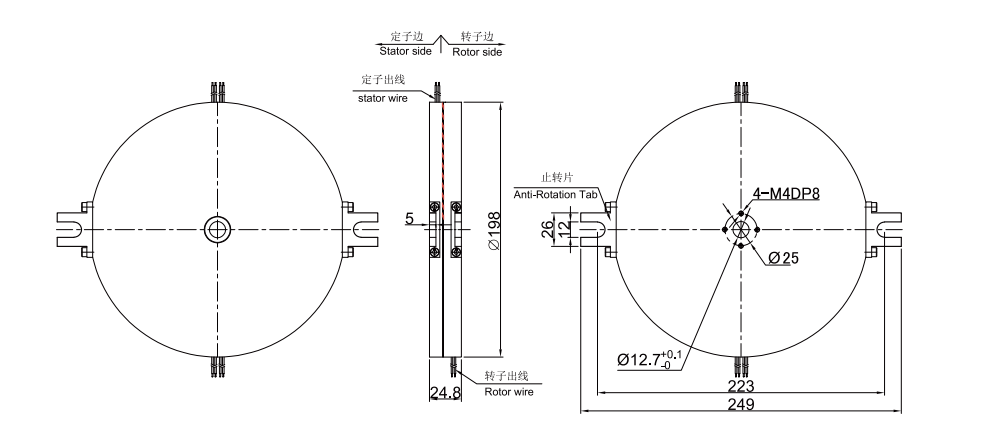 • · MPW198系列盘式滑环,盘式导电滑环, 厚度仅为24.8mm,全铝合金结构,接触材料采用贵金属+超硬镀金处理,运转稳定,电阻波动小。主要应用在高度空间有限,横向空间基本不受限制的特殊空间要求。