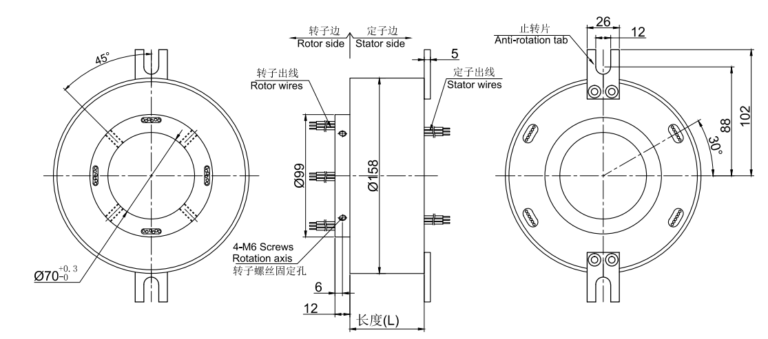 过孔式导电滑环是现在工业滑环里面性价比最高,最畅销的一个系列产品,主要应用于360度陆续在旋转且需要保证电源,信号不能中断的场合:如各种雷达,安防设备,娱乐设备,各种机器人、机械手,各种浮空器,各种风力发电设备吹瓶机,灯检机,各种转台,游乐游艺设备,虚拟3D,VR设备, 车载卫星天线,船载卫星电线,电缆卷筒,擦窗机设备,旋转餐桌,旋转舞台,旋转屏幕,旋转餐厅,电动工程机械,最新的VR模拟仿真设备等。;