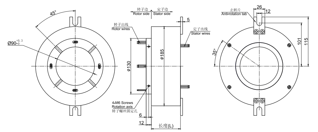 过孔式导电滑环是现在工业滑环里面性价比最高,最畅销的一个系列产品,主要应用于360度陆续在旋转且需要保证电源,信号不能中断的场合:如各种雷达,安防设备,娱乐设备,各种机器人、机械手,各种浮空器,各种风力发电设备吹瓶机,灯检机,各种转台,游乐游艺设备,虚拟3D,VR设备, 车载卫星天线,船载卫星电线,电缆卷筒,擦窗机设备,旋转餐桌,旋转舞台,旋转屏幕,旋转餐厅,电动工程机械,最新的VR模拟仿真设备等。;